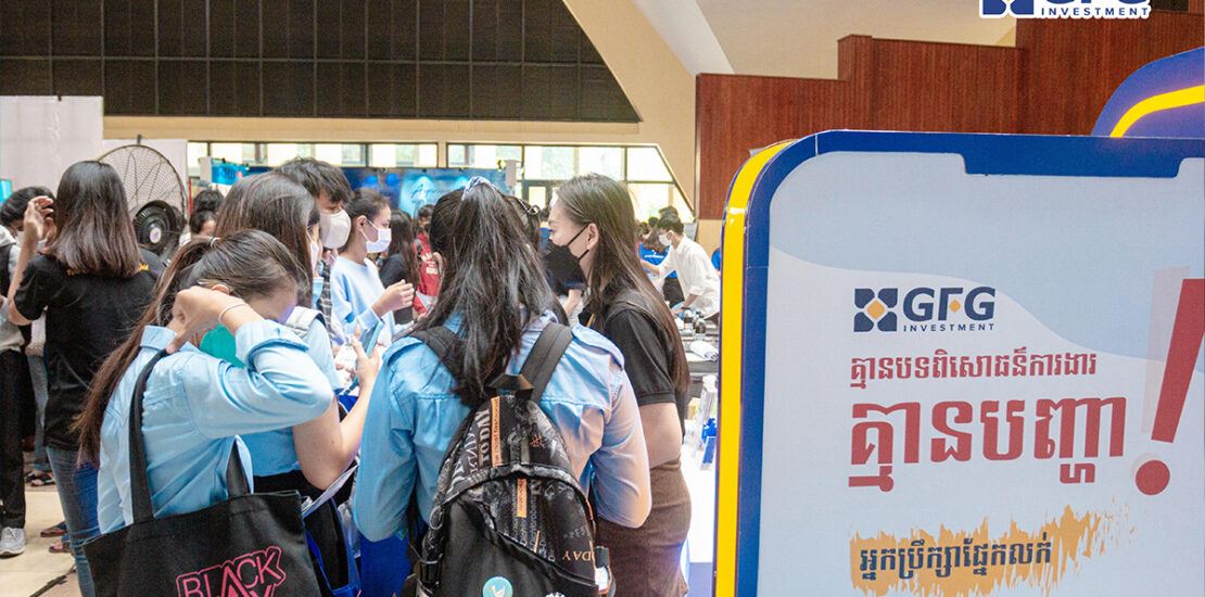 សកម្មភាពក្រុមការងាររបស់ក្រុមហ៊ុន GFG Investment នៅស្ដង់ពិព័ណ៍ការងារលើកទី៣ ដែលបានរៀបចំឡើងនៅក្នុងបរិវេនសាកលវិទ្យាល័យភូមិន្ទភ្នំពេញ នាថ្ងៃទី០៨ ខែកក្កដា ឆ្នាំ២០២២ ។