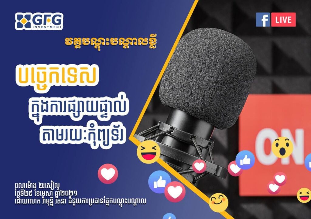 នៅថ្ងៃទី ២៩ ខែ មេសា ឆ្នាំ ២០២០ ផ្នែកបណ្តុះបណ្តាល បានរៀបចំវគ្គសិក្សាខ្លីតាមរយៈ ZOOM ស្តីពី ” បច្ចេកទេសក្នុងការផ្សាយផ្ទាល់តាមរយៈកុំព្យូទ័រ ” ដើម្បីបង្កើនសមត្ថភាពបុគ្គលិកក្នុងការចែករំលែកព័ត៌មានទៅលើបណ្តាលសង្គមផ្សេង។