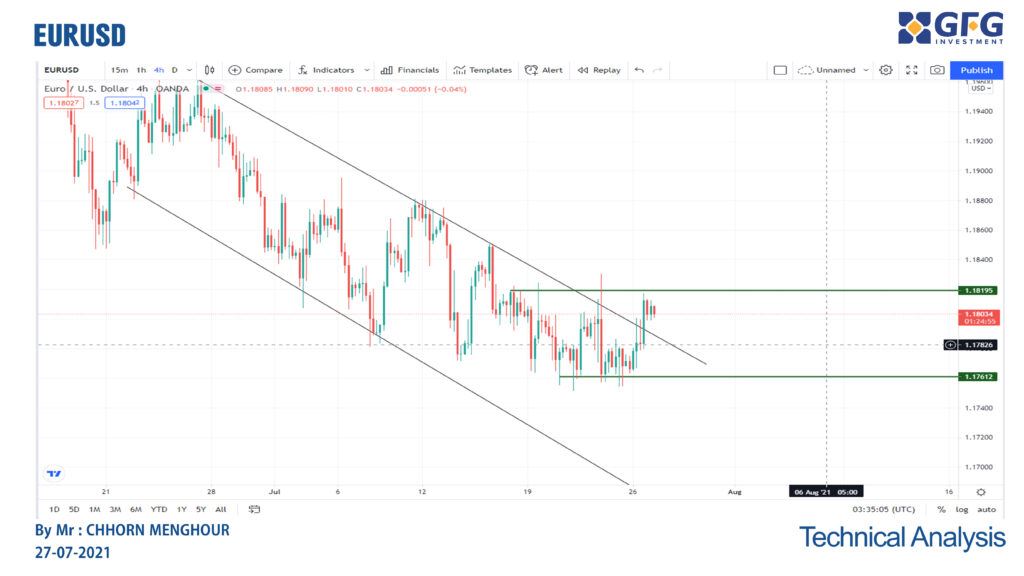 តម្លៃហាងឆេងលុយ EURUSD បានបំបែកទៅលើ Uptrend Channel ដែលវាសញ្ញានៃការកើនឡើងបន្ថែមទៀតនៃតម្លៃហាងឆេងរបស់គូរលុយមួយនេះ ក៏ប៉ុន្តែតម្លៃហាងឆេងនេះក៏មិនទាន់ថានឹងប្រាកដថាមានកើនឡើងនោះទេត្រូវរង់ចាំបន្តិចដល់វាទម្លាយសម្ពាធនៅ 1.1819 ទើបសម្រេចចិត្តចូលទីផ្សារល្អជាង។