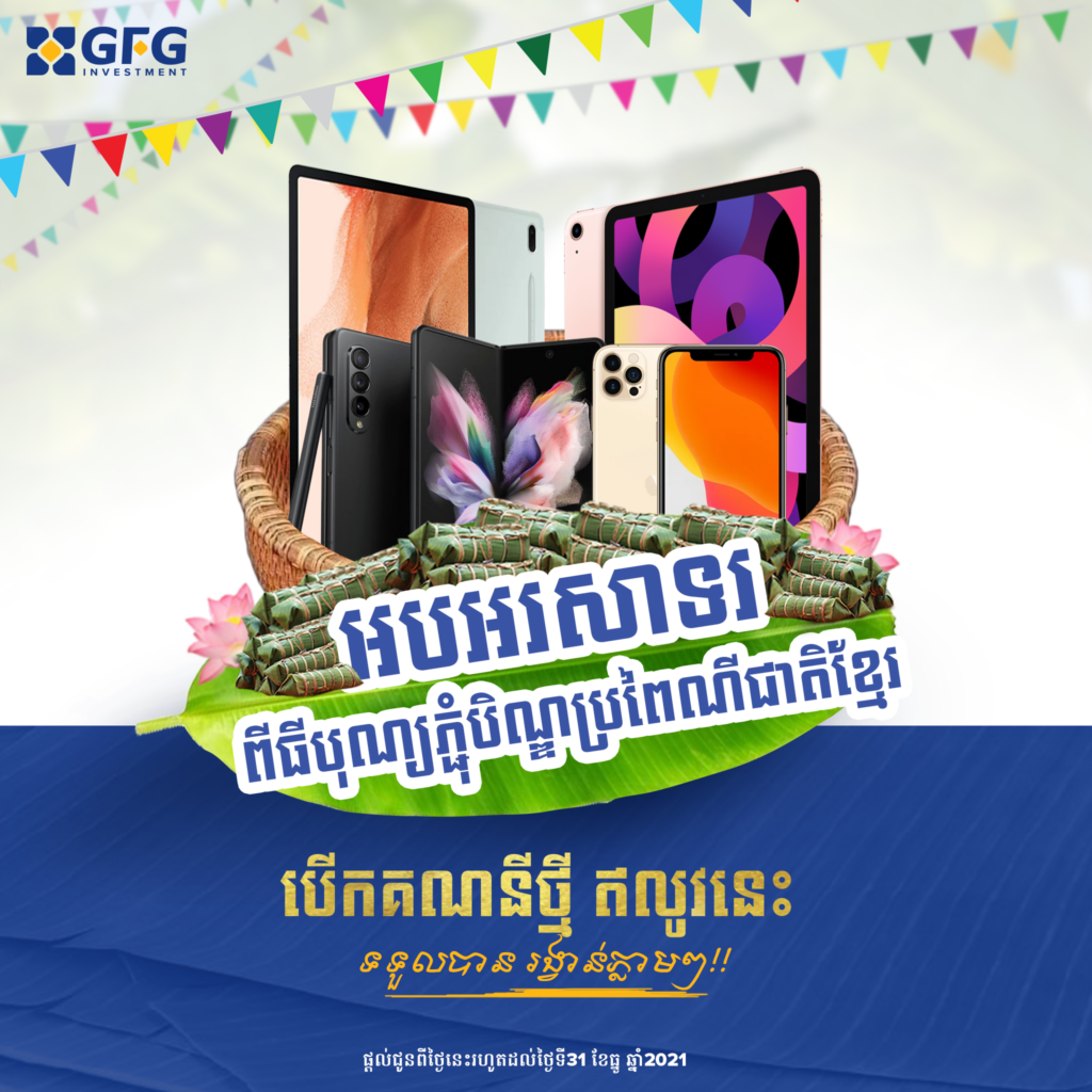 ប្រូម៉ូសិនថ្មីពីក្រុមហ៊ុន GFG Investment !!ដើម្បីចូលរួមអបអរសាទរពីធីបុណ្យភ្ជុំបិណ្ឌប្រពៃណីជាតិខ្មែរខាងមុខនេះ!!