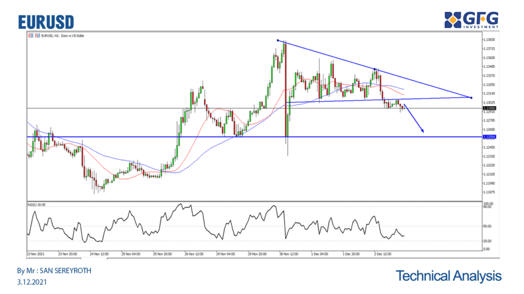 ហាងឆេងលុយអឺរ៉ូបានធ្លាក់ចុះបំបែកនូវតម្លៃបាទក្នុងតម្លៃមធ្យមភាគ 1.1310។ បើយើងឃើញថារូបរាងរបស់វាបានចេញជារាងត្រីកោណទៅបានបង្ហាញទិសដៅធ្លាក់ចុះដោយខ្សែ EMA កាត់គ្នាចុះហើយខ្សែហើយចុះបងដែរ។